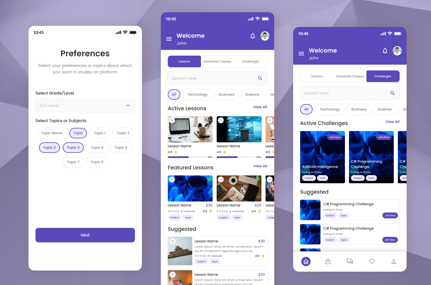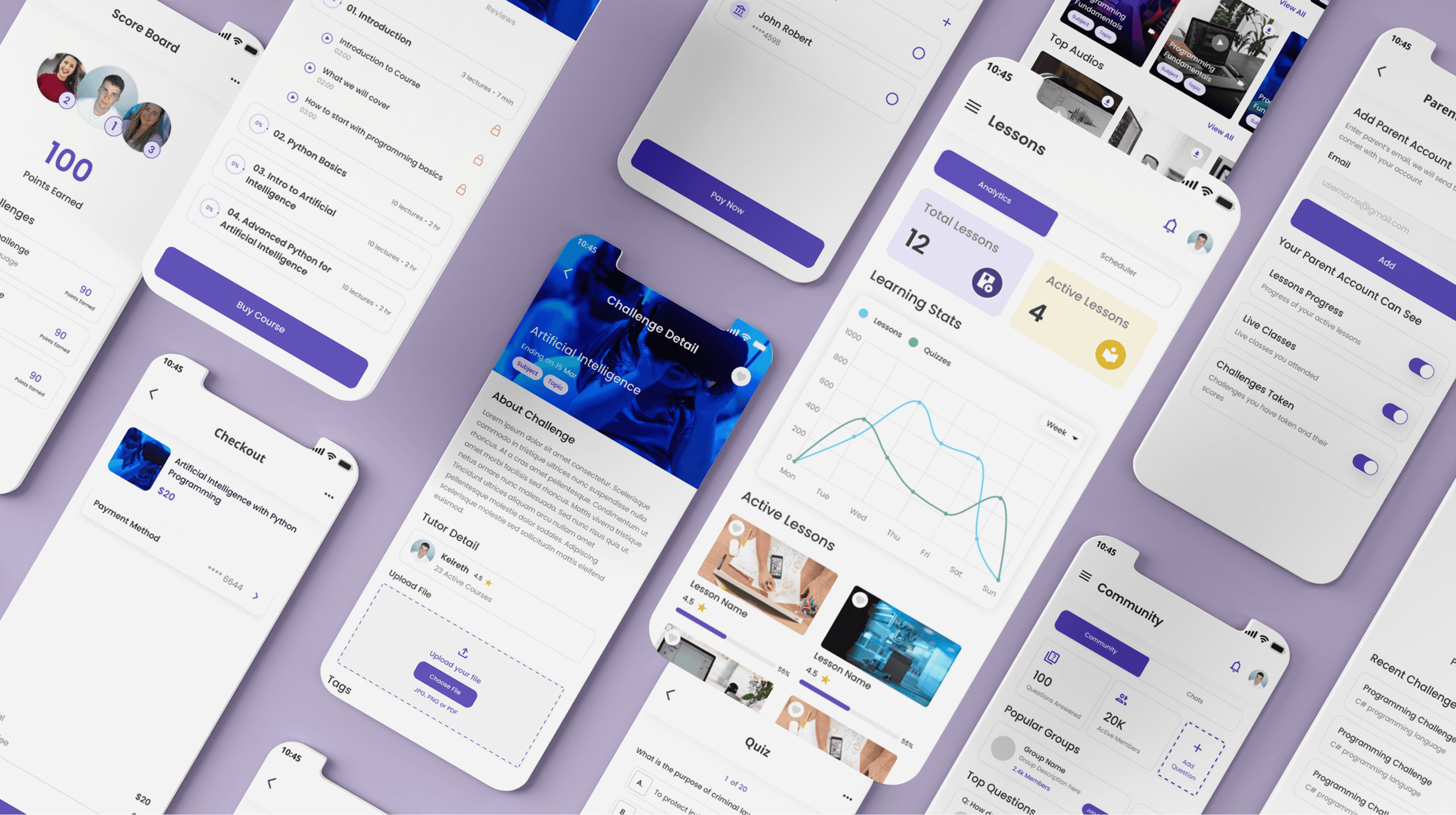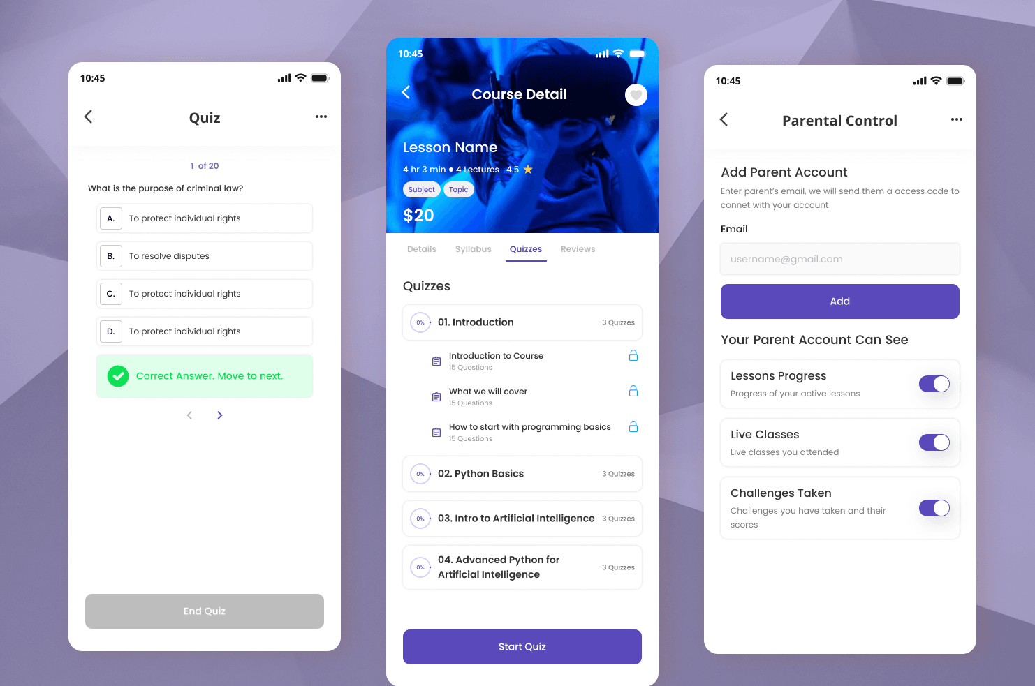 UI/UX Design: Focused on clean layouts, easy navigation, and interactive elements for an enjoyable learning experience.