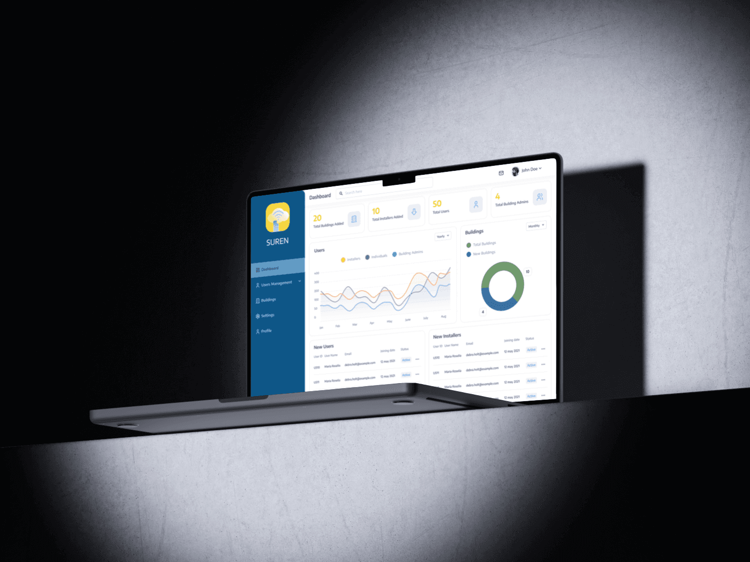 ✅ A structured dashboard for an overview of all buildings, admins, and devices.